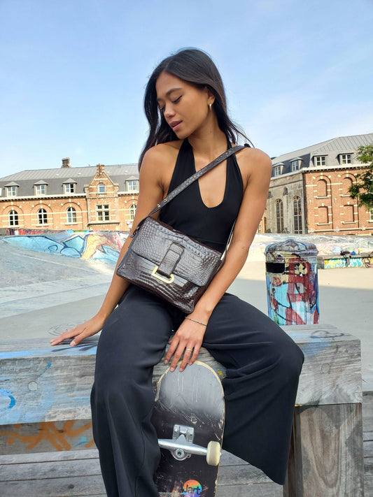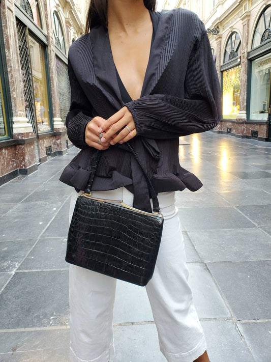 Delvaux vintage handbag in croco leather 1960