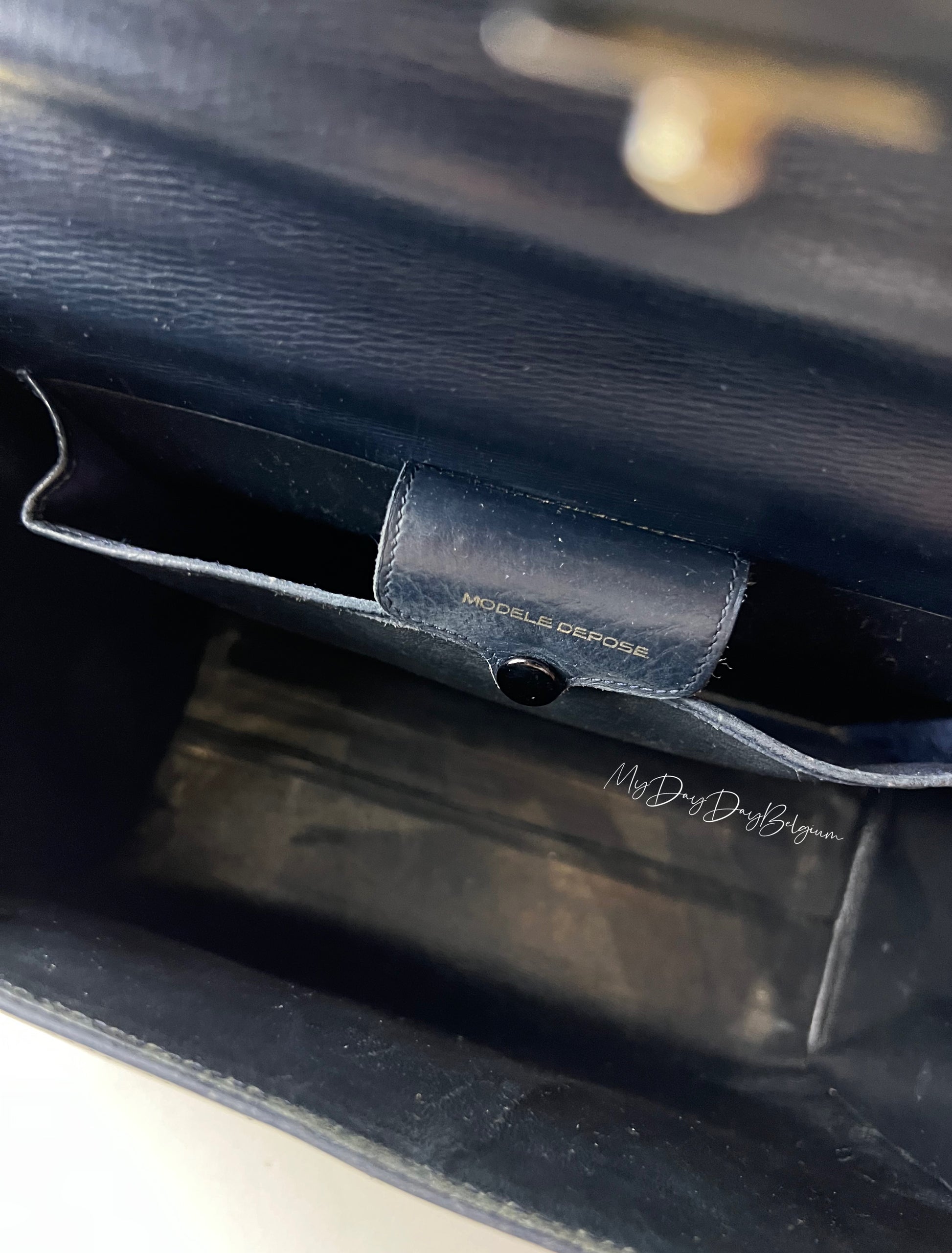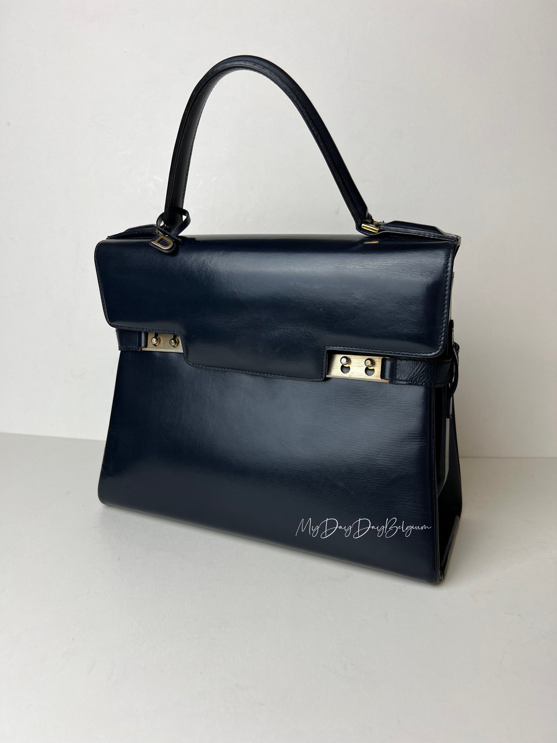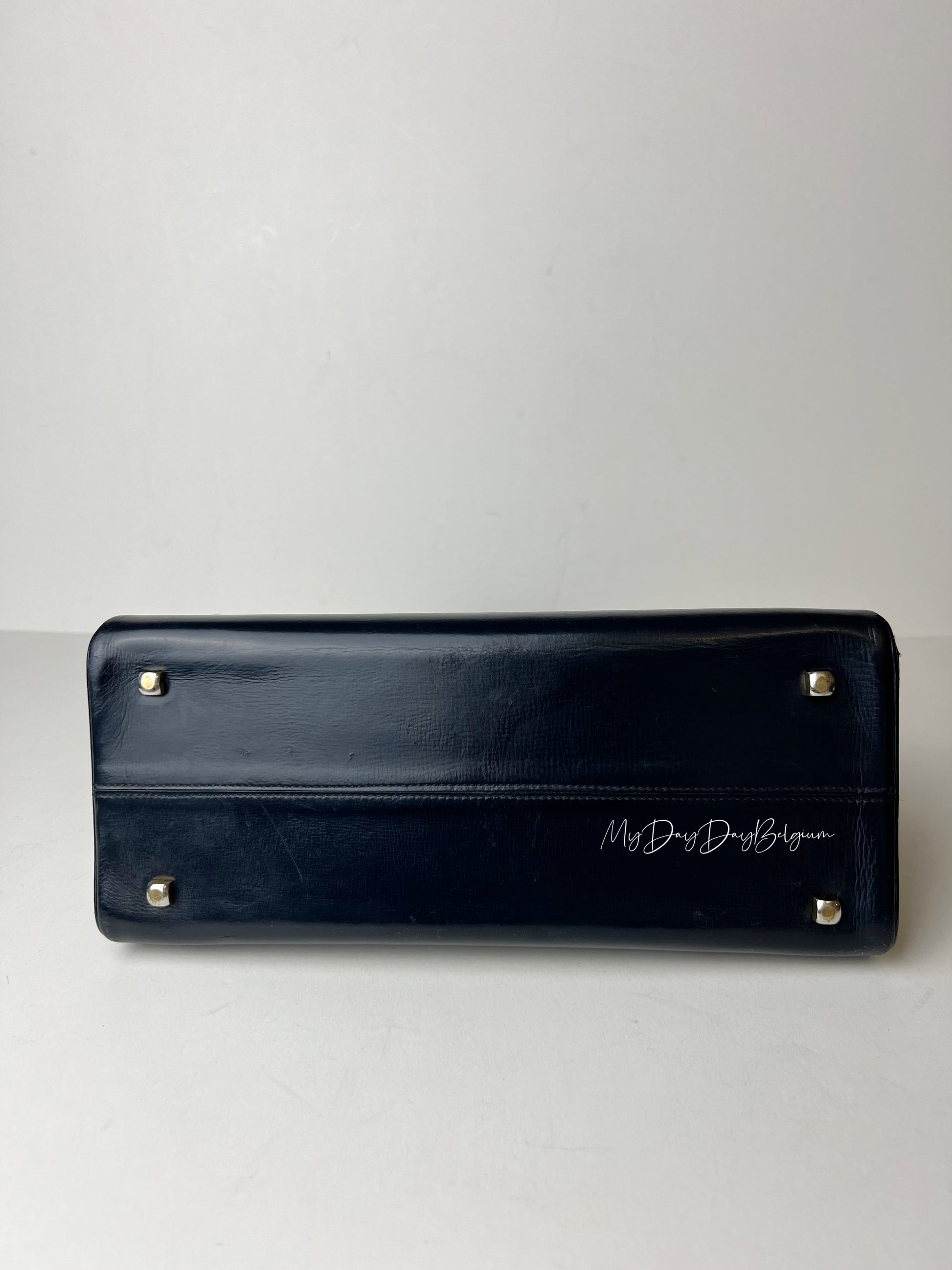 Beautiful Tempete bag in navy blue - crafted in traditional way of the 70s using passe poile technique for the side.