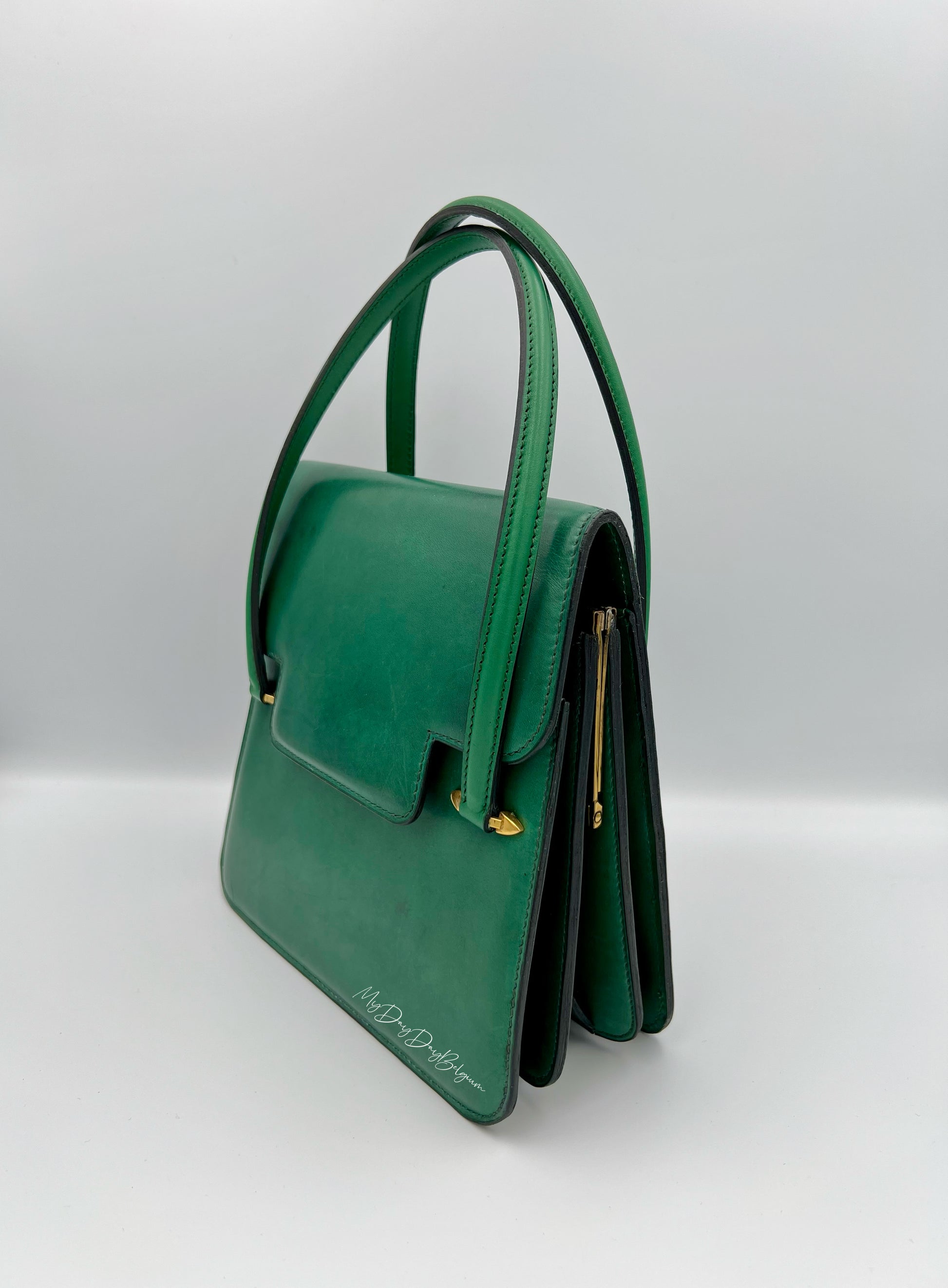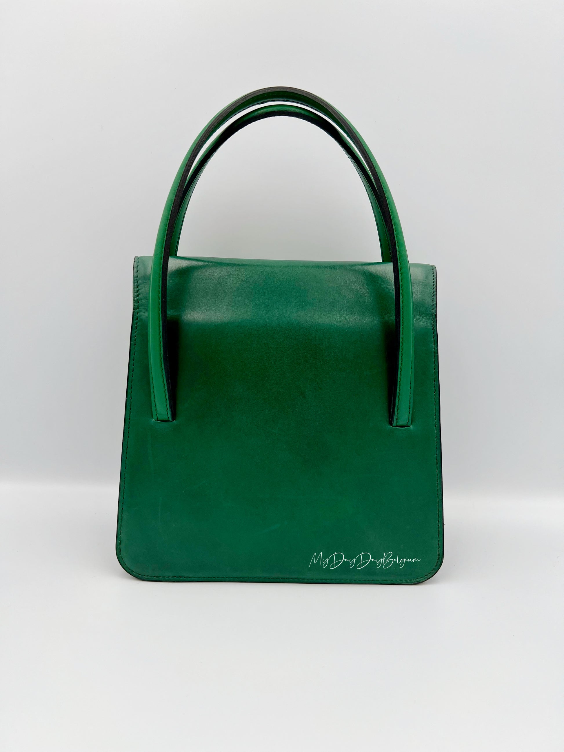 Created in 1966, this Delvaux "Chablis" is the predecessor of its relaunched interpretation in 1996. A rare piece to find in the market especially in the limited green colour it captures the essence of Belgian luxury at its most discreet within this decade. Belgium in the mid-1960s favoured understatement over excess. In small Brussels cafés and along city streets, elegance revealed itself through proportion, quality, and quiet confidence. This Chablis belongs to that world - one can easy imagine it being carried into the Rugbyman place st Catherine for a delicious sea food dinner enjoyed with friends over wine or the classic Belgian brews. It is small and compact, as well as intentionally restrained - the design of its structure top handle supports carriage by hand or a leisured stroll in the crook of the arm. It is a piece created to exist in harmony with its surroundings — not for display, but for presence. A handbag that reflects character rather than overtly announcing it. It really does own you as much as one owns her.