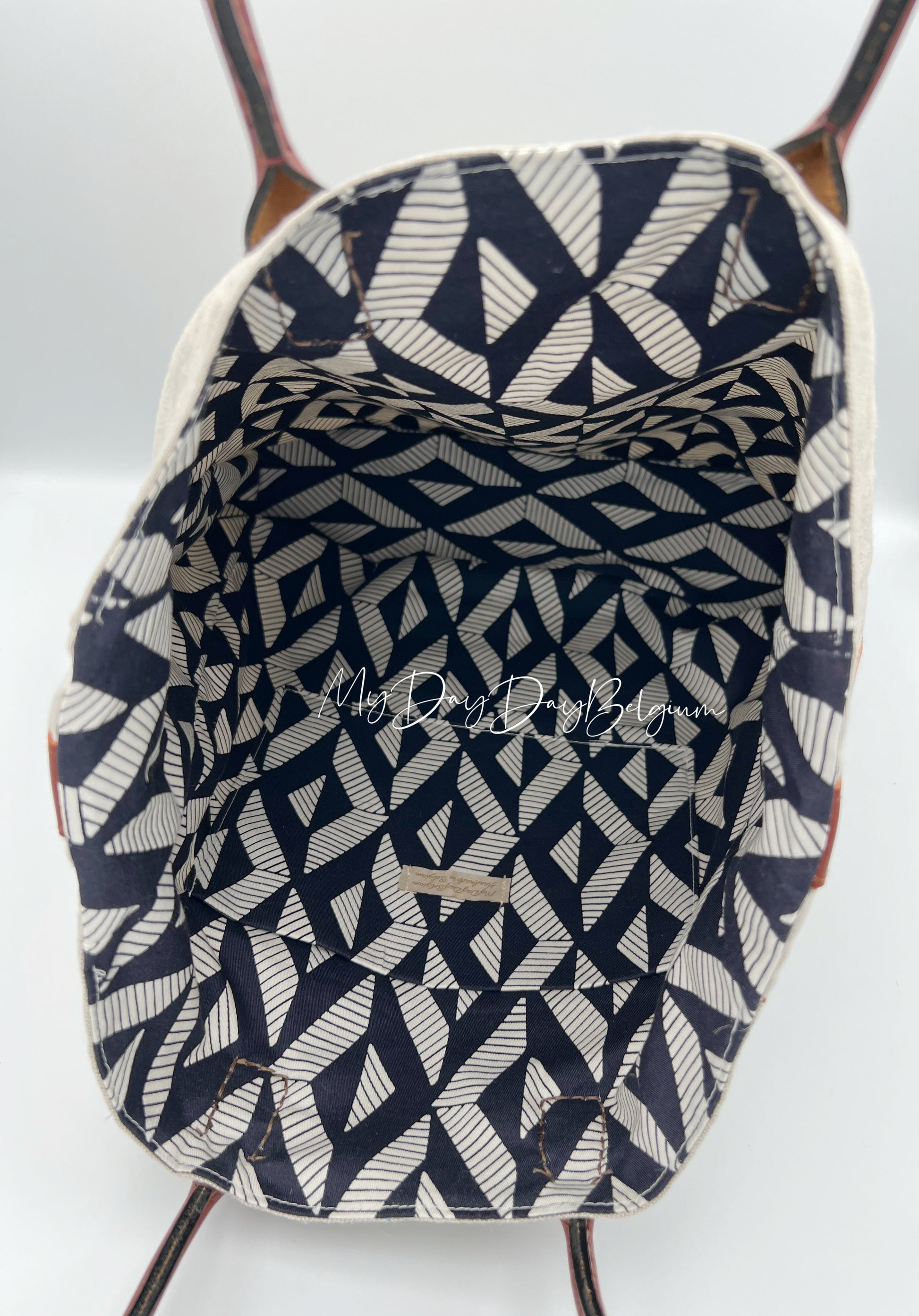 Some objects carry more than craftsmanship; they carry stories. Recognising their cultural and aesthetic value, we felt it to be a shame to let these historic handbag protectors to remain forgotten in a wardrobe. Hence we chose to give them a second life. At MyDayDayBelgium, we carefully upcycled original 1970s vintage Delvaux dustbags, preserving their authentic charm, texture, and emblem, whilst transforming them into a unique, contemporary handbag. Every one of our pieces honours the heritage of Belgium’s oldest luxury leather goods house. Each of our stitches are made with love in the Kingdom of Belgium and every fold reflects our commitment to sustainability, as well as our intention to carry the past into the present. Our upcycled original Delvaux dustbags, turned tote, are hence both a fashion accessory and a fragment of Belgian design history.
